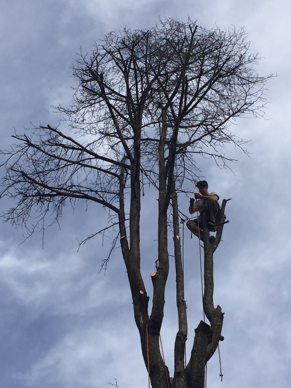 Abbattimento pianta ad alto fusto in giardino privato. Gestione alberi, salute piante, manutenzione e ristrutturazione giardino, pronto intervento, prevenzione rischi