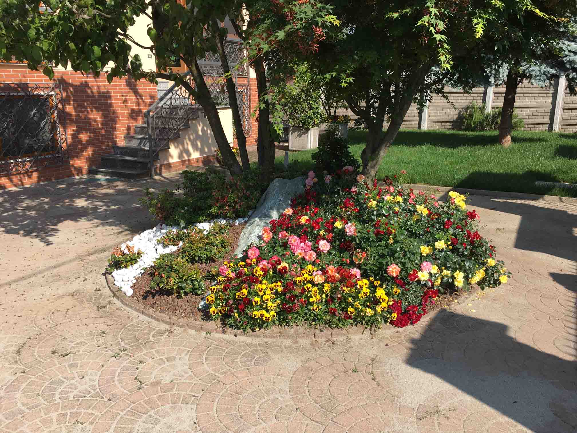 Ristrutturazione giardino residenziale con aiuole ornamentali. Scelta piante, piantumazione fiori, pacciamatura, rivitalizzazione suolo