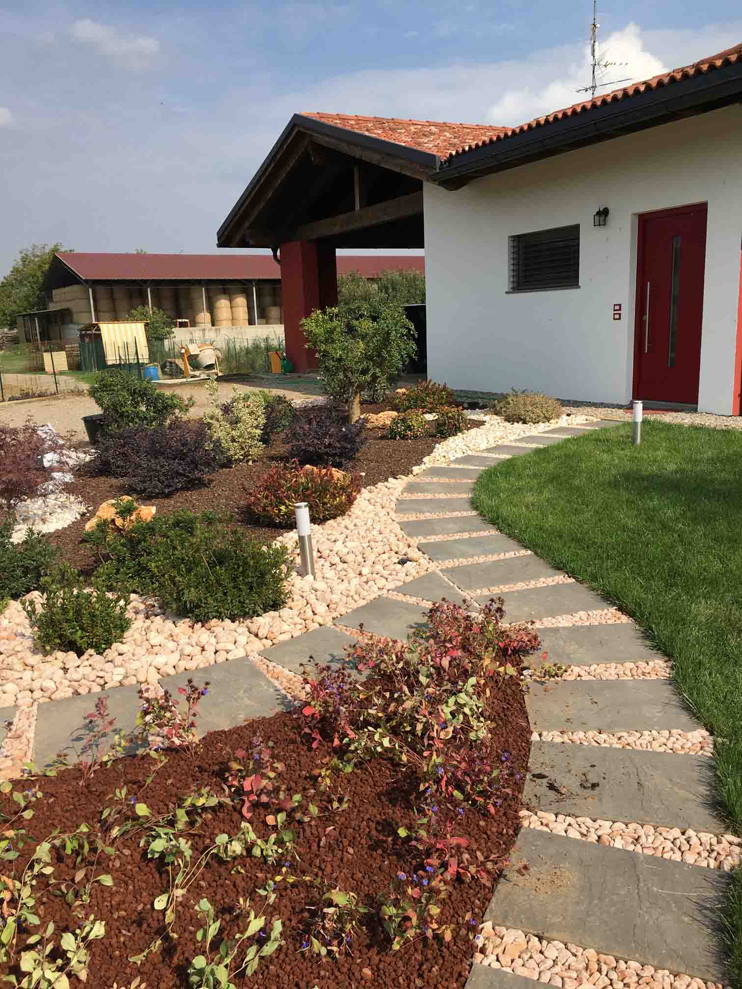 Realizzazione di pavimentazioni, vialetti, marciapiedi e aiuole in giardino privato. Pacciamatura, camminamenti, scelta piante, piantumazione fiori
