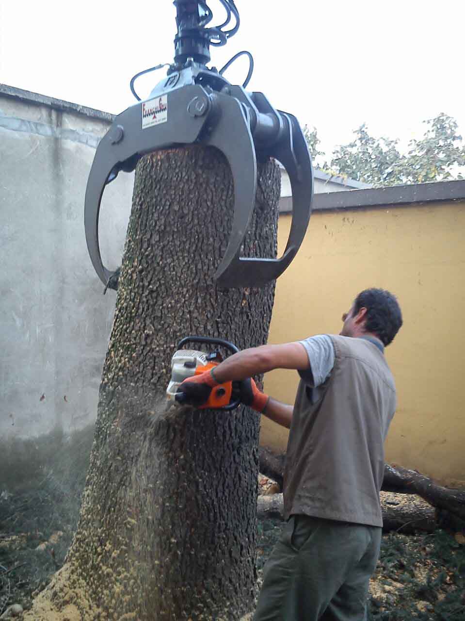 Abbattimento pianta ad alto fusto in giardino privato. Gestione alberi, salute piante, manutenzione e ristrutturazione giardino, pronto intervento, prevenzione rischi