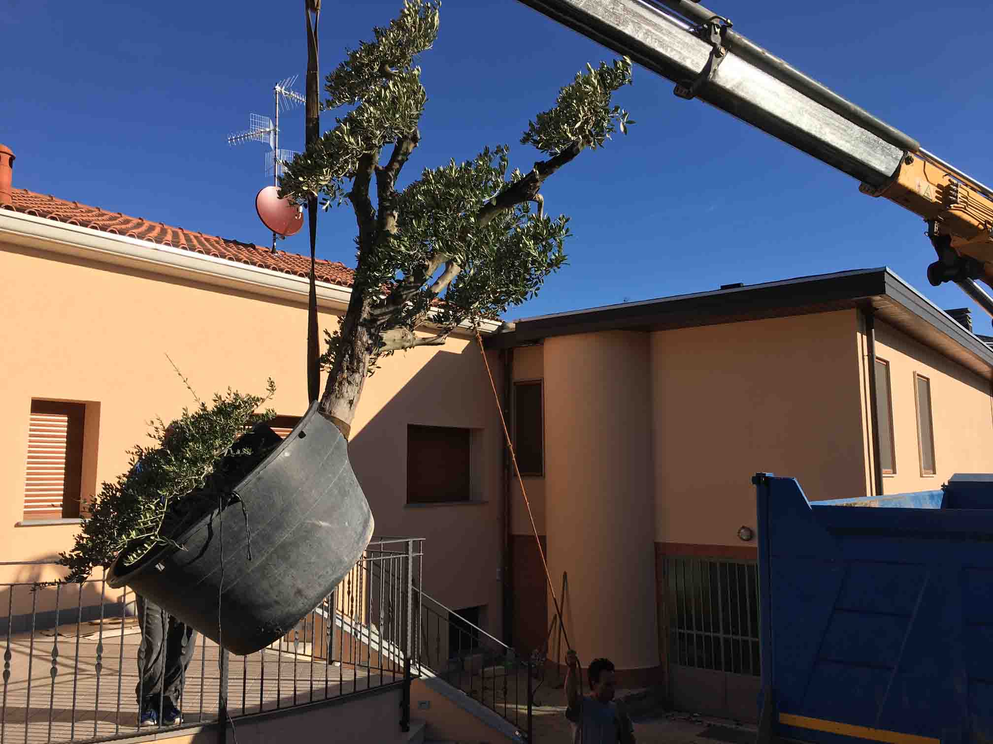 Abbattimento alberi in giardino commerciale. Prevenzione rischi di caduta e schianto, consolidamento alberi, ristrutturazione giardino