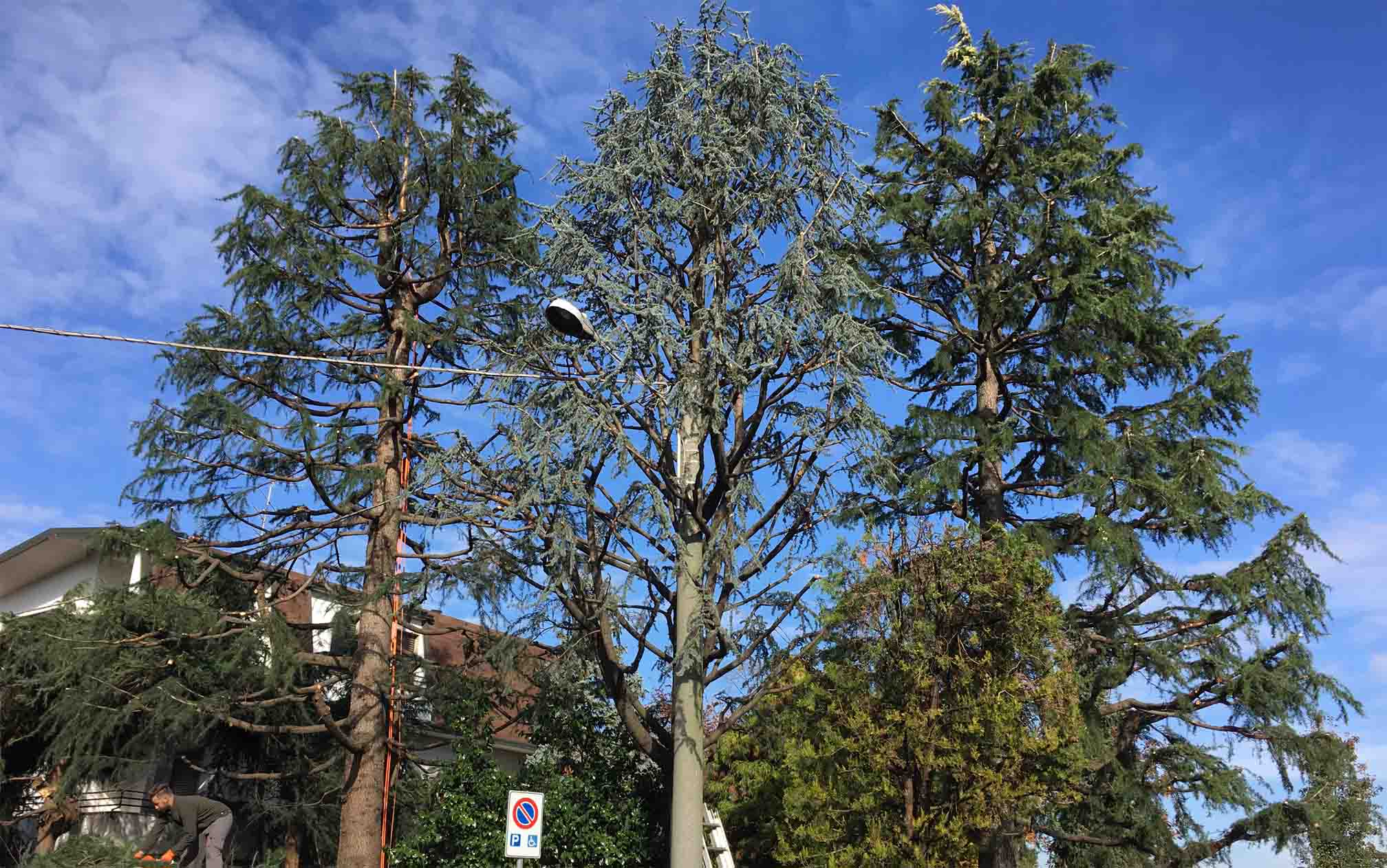 Potatura alberi ad alto fusto per garantire simmetria, salute e stabilità in giardino condominiale. Attrezzature anche per piante oltre i 20 metri, potature strategiche