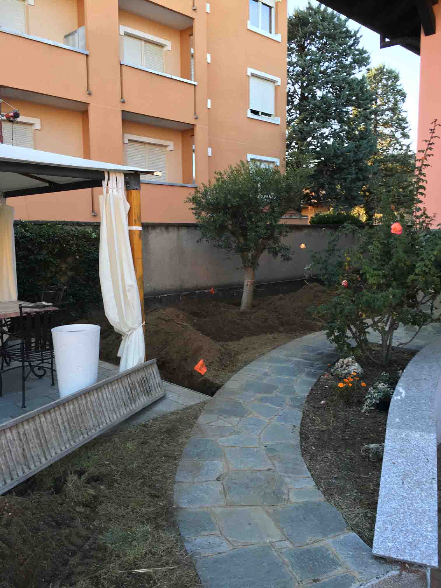 Progettazione giardino privato con area relax. Messa a dimora delle piante, camminamenti, irrigazione